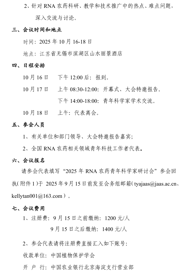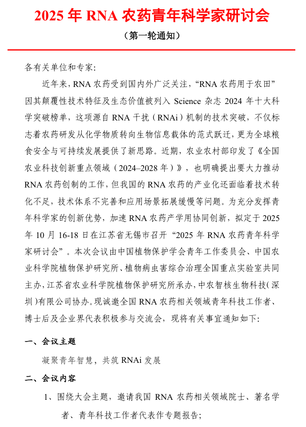 2025年RNA农药青年科学家研讨会(第一轮通知)