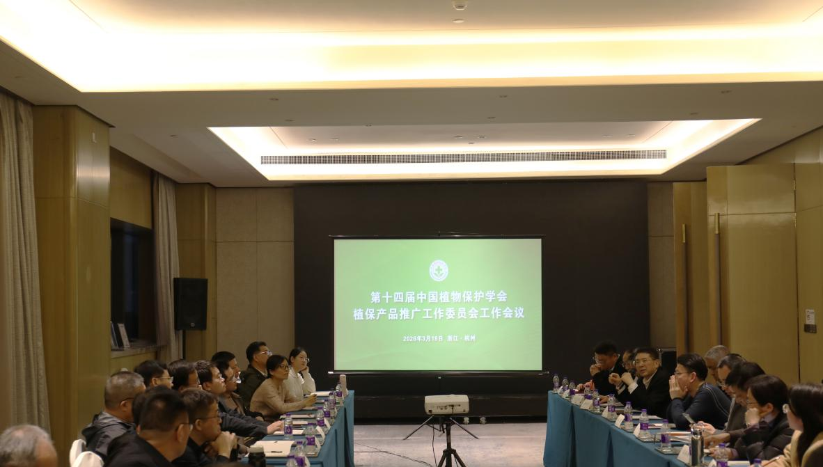 2026年3月19日,第十四届中国植物保护学会植保产品推广工作委员会第一次会议在浙江杭州召开。本次会议是新一届植保产品推广工作委员会成立后的首次全体会议,来自全国各地的32位领导和专家齐聚一堂,共商植保产品推广工作发展大计。中国植物保护学会副理事长兼秘书长陈昶出席会议并作指导讲话。陈昶副理事长代表学会对新一届工作委员会的成立表示祝贺,并充分肯定了植保产品推广工作委员会在连接科研创新与田间实践、推动植保产品科学应用与成果转化方面发挥的重要作用。他指出,当前农业绿色发展对植保工作提出了更高要求,希望新一届工作委员会继续发挥桥梁纽带作用,紧密围绕国家战略需求,助力乡村振兴和科技兴农事业。